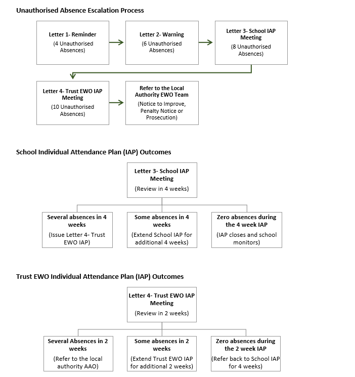 If sufficient unauthorised absences accumulate, the school will take steps and involve the Trust's Education Welfare officer.